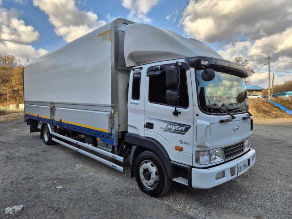 5톤윙바디. 16년식 현대 메가트럭 윙바디 3인승. 초장축 플러스. 후축윙. 길이 8,100. 1인신조 무사고. 실주행거리 245,828km